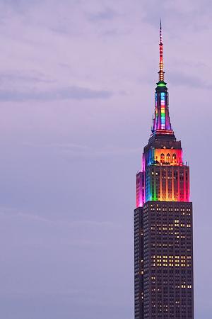 The Empire State Building lit up in rainbow colors to celebrate Pride in New York City.